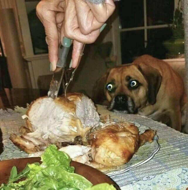 Наши четвероногие лучшие друзья успешно пользуются своей милотой и выманивают у хозяев вожделенный кусочек, оставляя на память смешные фотки.1. Плотоядная зайка
