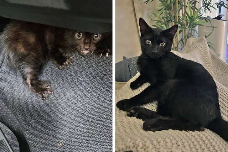 «Блошка, когда я подобрал ее на дороге, и то, как она выглядит сейчас»