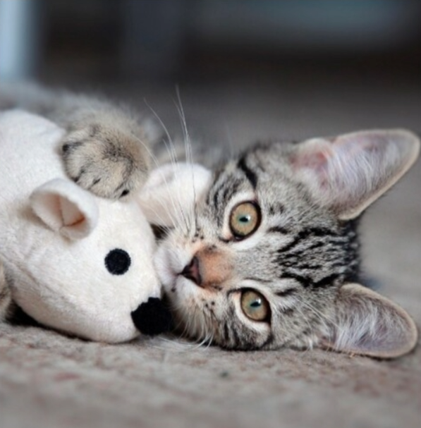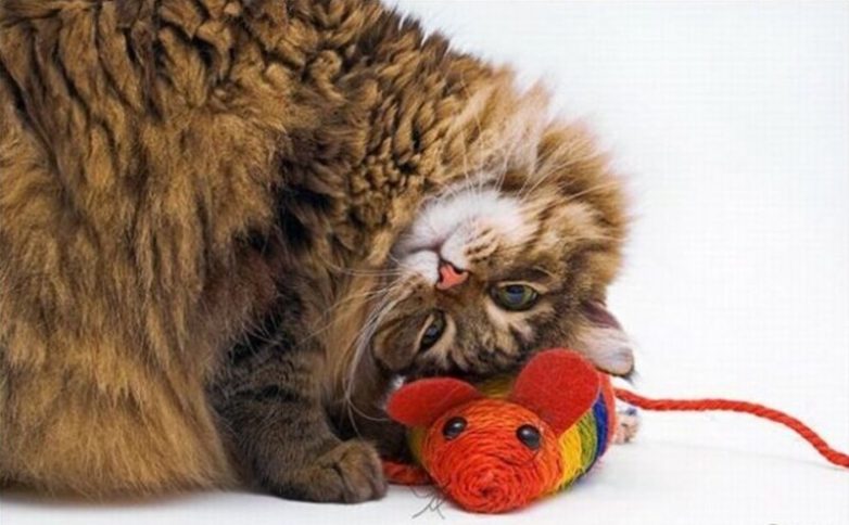 Прежде чем научиться ловить настоящую добычу – живую, пищащую и очень опасную, котята учатся на искусственных мышках.