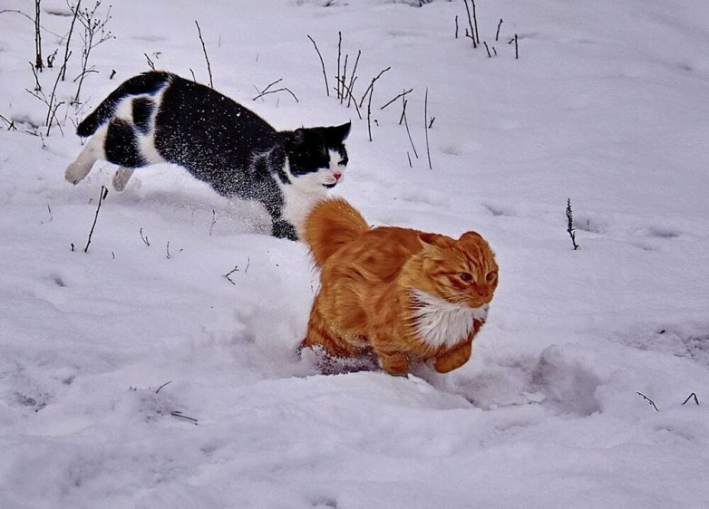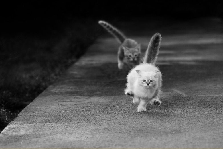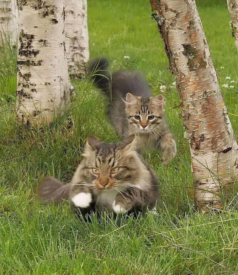 Но активность котейки тоже иногда проявляют. Да ещё какую: если уж пушистые спринтеры взялись поиграть друг с другом или погонять собак, то закончить игру им ничто и никто не помешает. Целеустремлённость – это про котиков.