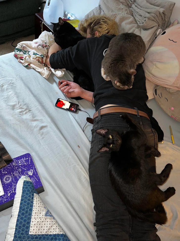 «Мой парень уснул. И вот что сделали коты»