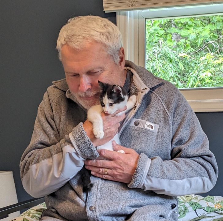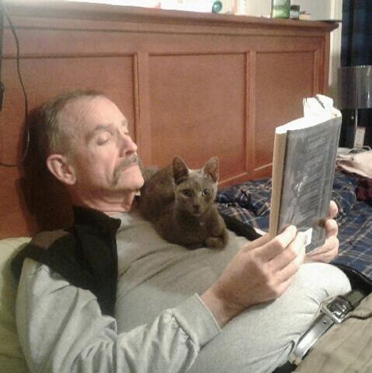 «У моих родителей всегда были собаки, а кошек отец не любил. Но сначала они подобрали одного котенка, потом — второго. И посмотрите на папу сейчас»