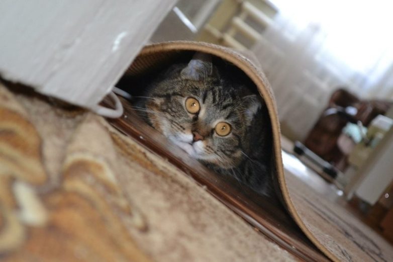Особенно если они сами послужили его причиной. К примеру, невольными или, что чаще, вольными пакостями. И услышав грозный окрик или возглас удивления, не предвещающий ничего хорошего, котаны пытаются быстро спрятаться и слиться с местностью. Как у них это получается? С переменным успехом, но неизменно смешно.