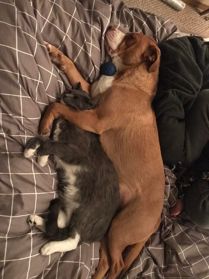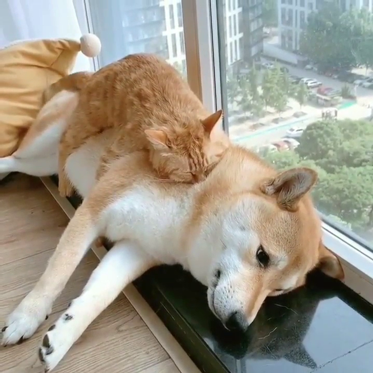 Собакен знает, что не нужно двигаться, если кот наконец-то удобно устроился