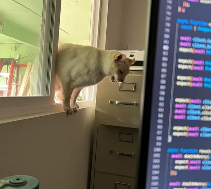 «Моя кошка решила залезть на чердак, но что-то пошло не по плану. Она простояла так минут десять»