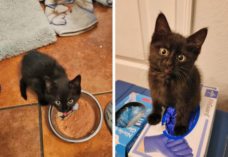 «Увидел эту девочку ночью на обочине, когда проезжал мимо. У нее были серьезные травмы нижней челюсти и хвоста. Сейчас ей 7 недель и она очень быстро идет на поправку»