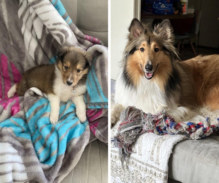 «Слева щенку 3 месяца, справа — 10. Я чуть спину не сорвала из-за этой фотки!»