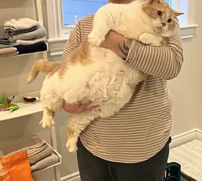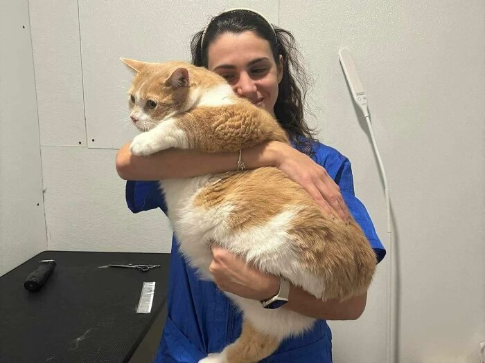 «Кристина, его новая хозяйка, и основательница приюта для кошек, который занимается реабилитацией кошек с избыточным весом, взяла его к себе и посвятила себя тому, чтобы помочь ему сбросить вес.»