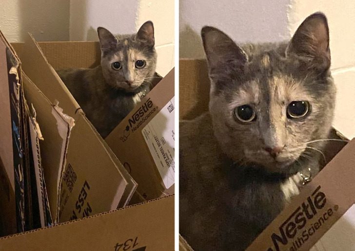 «Она запрыгнула в контейнер для вторсырья и выглядела такой расстроенной. Девочка, мы не можем оставить себе все эти коробки»