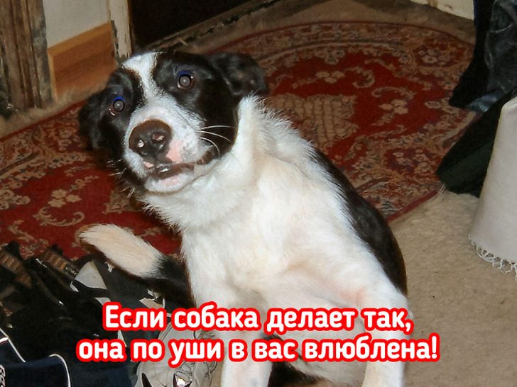 Собаки не скрывают своих чувств, и покачивание всем телом — явный признак того, что ваша собака по уши в вас влюблена. Так она выражает восторг, будь то встреча с вами или с приятелем-псом. Это верный признак счастья и приглашение поиграть. Не упустите шанс и устройте веселую игру или предложите другое развлечение, чтобы разделить этот заряд радости.
