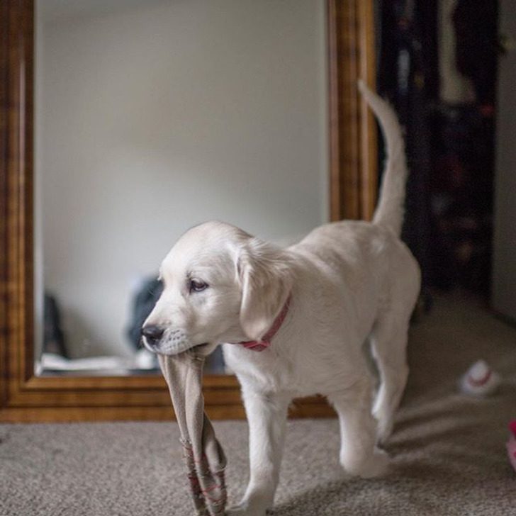 Собаки воспринимают мир прежде всего через запах. Они полагаются на свой нос для обмена сообщениями между членами стаи. Когда вы носите одежду, она пропитывается вашими феромонами. Собаки интерпретируют это как знак того, что это важный предмет, и раз вы оставили его без внимания, значит, отдали ей. Именно поэтому, если они вас любят, то могут стащить вашу одежду. Так собака чувствует вашу близость, даже когда вас нет рядом.