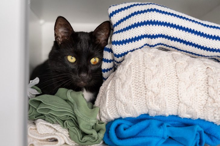 Кошки, к тому же, очень чистоплотные существа, поэтому свежевыстиранное белье и постельное белье могут быть привлекательным местом для сна.