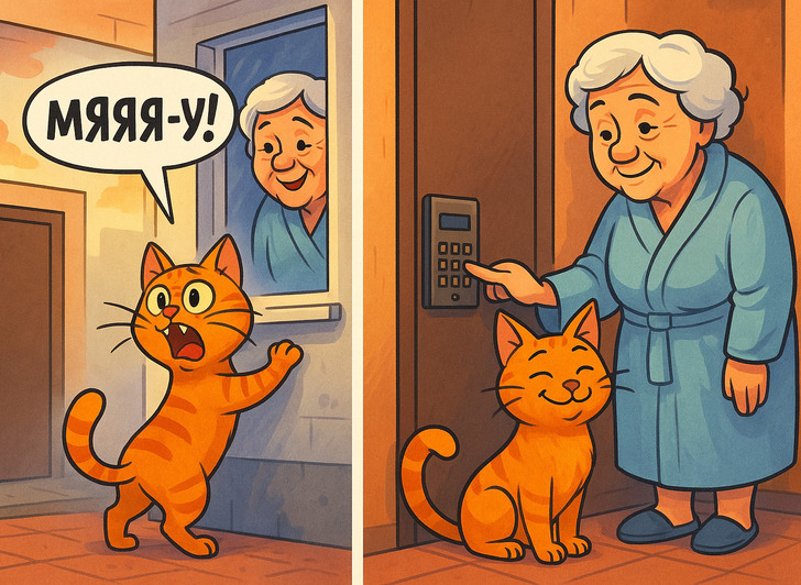 Был у нас необычайно умный кот. Котик утром выходил гулять на улицу, к вечеру возвращался, но летом случалось, что загуливал до утра, часов до 4-х. Мы живем на 3-м этаже, дверь в подъезде тяжелая, к тому же закрывается на кодовый замок, никакими лапами не откроешь. Но наш Рыжик был не прост: он вычислил соседку, которая жила в соседнем подъезде на 1-м этаже и всех животных нашего дома знала. Котик шел тихонько мяукать ей под окно, она выходила, нажимала кнопки на нашем домофоне и говорила: «Тут ваш котик пришел, дверь откройте, пожалуйста». И так неоднократно. И самое смешное: приходя с прогулки, он шел в туалет на унитаз, прямо как человек. Причем сам разобрался, для чего унитаз нужен и как им пользоваться.