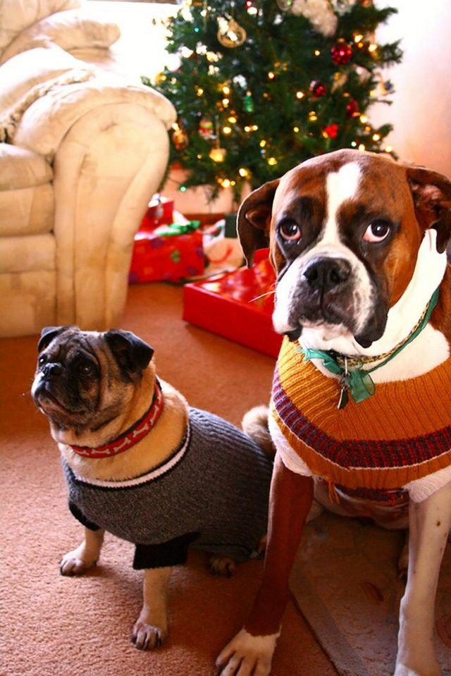 Сегодня нам поднимут настроение забавные животные в рождественских костюмах, которые, судя по их мордам, не очень рады этим нарядам.