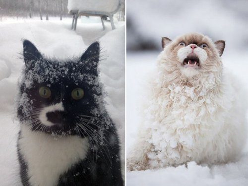 Наши любимые пушистики хоть и имеют шикарную шубку, не все любят гулять, особенно когда на улице выпал снег.