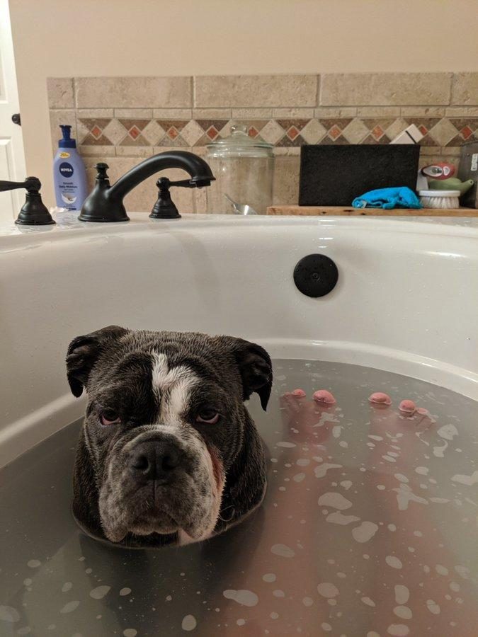 «Каждый раз, когда кто-то идёт, чтобы принять ванну, Блу полагает, что ему тоже нужно быть там»