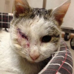 Очень трогательная история про одноглазого кота, который нашёл дом и стал любимцем семьи.