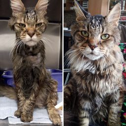 Спасённые кошки до и после того, как нашли дом и любящих хозяев