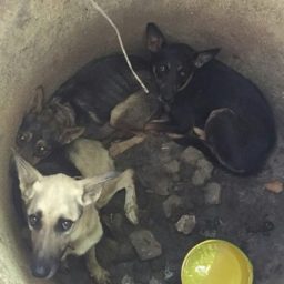 Парень чудом помог трем псам, брошенным на произвол судьбы