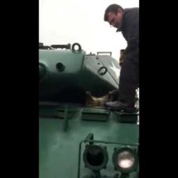 В это сложно поверить, пока не увидишь своими глазами. Молодой, но очень любопытный енот умудрился застрять в танке!