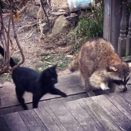 Слепой енот спас двух котят