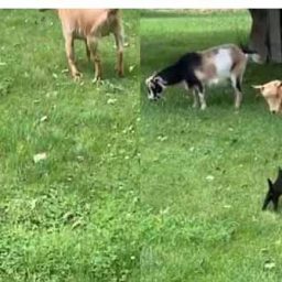На что способен котенок, если ему несколько недель от роду и он впервые оказывается на открытом воздухе? Как оказалось — на очень многое, например, напугать огромную козу. Разница в размерах колоссальна, но враг повержен и спасается бегством!