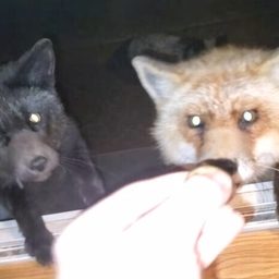 Девушка подкармливает лис перепелиными яйцами, которые они уплетают с превеликим удовольствием.
