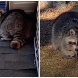Мама-енот не слезла с крыши, пока люди не спасли всех детенышей