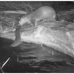 Фотограф Евгений Полонский опубликовал в сети видео ночной охоты выдры, снятое фотоловушкой в Астраханском государственном биосферном заповеднике.
