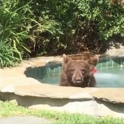 Пара из штата Висконсин, США, плыла по озеру, как вдруг они заметили в воде нечто странное. Подплыв поближе они поняли, что это был молодой медведь, голова которого застряла в пластиковой бочке.