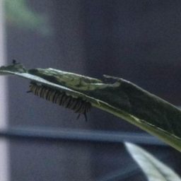 Девушка поливая цветок у себя в комнате заметила жирную гусеницу на одном из стеблей. То ли у девушка очень добрая и вместо того, чтобы выбросить или убить гусеницу решила ей помочь, то ли ей просто было интересно что получится и получится ли вообще.