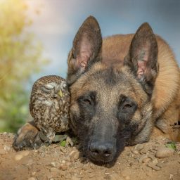 Немецкий фотограф Таня Брандт создала серию фотографий, показывающую трогательную дружбу между 2-летней немецкой овчаркой и крошечной совой по имени Наполеон. На это у нее ушло несколько лет.